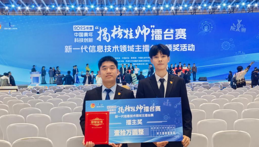 近日,第十九届“挑战杯”全国大学生课外学术科技作品竞赛圆满落幕。我院参赛团队在2025年度中国青年科技创新“揭榜挂帅”新一代信息技术领域擂台赛中,斩获特等奖1项、一等奖1项,其中1个项目以小组第一名的优异成绩荣获擂主奖。